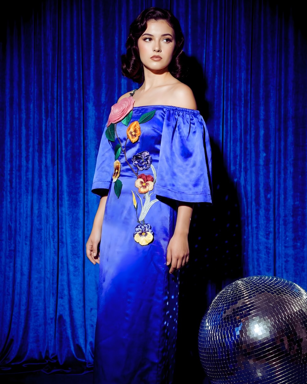 For evening celebrations: Pair with metallic gold or silver strappy heels, statement drop earrings, and a sleek clutch. The off-shoulder neckline is the focal point — skip the necklace and let the embroidery shine.